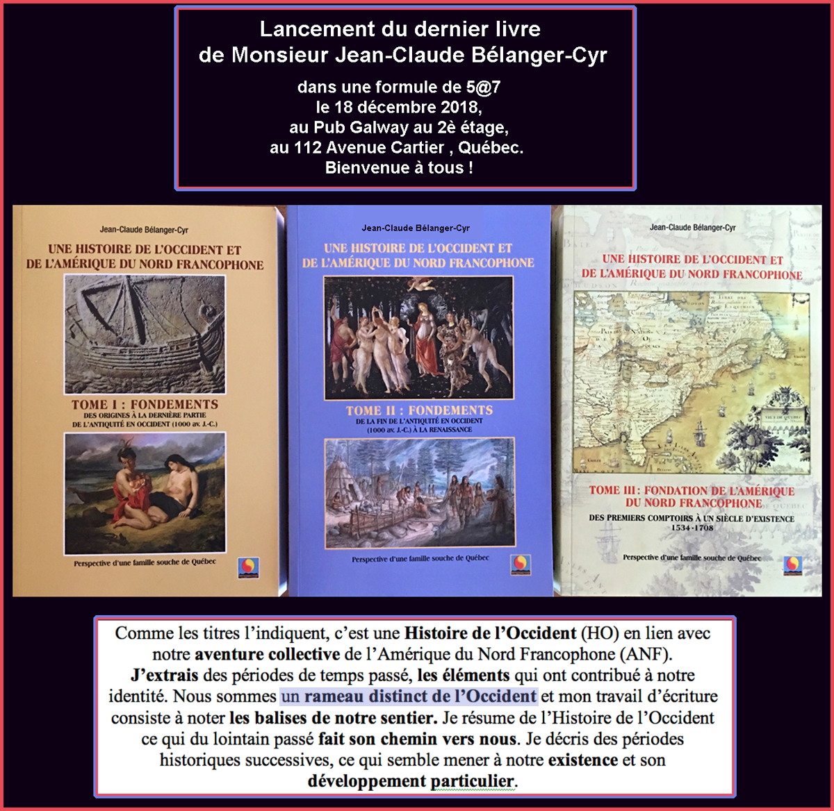 Comme les titres l’indiquent, c’est une histoire de l’occident (HO) en lien avec notre aventure collective de l’amérique du Nord Francophone (ANF)…