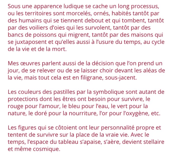 Mes oeuvres parlent d’amour, de nature , de vie et de mort…