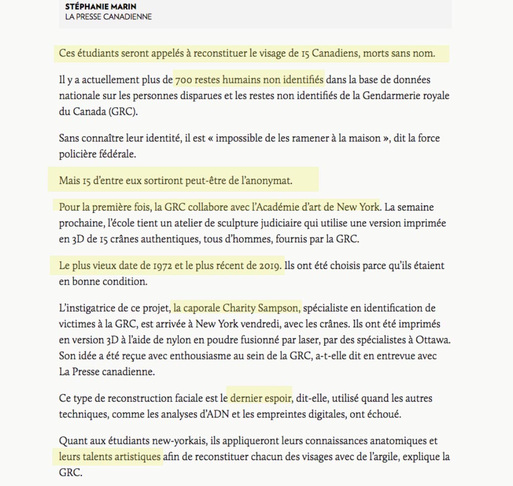 Collaboration, Étudiants en arts et la GRC. Par André Bécot © 5 janvier 2020 Articles et reportages, Artistes Aucun commentaire Étudiants en arts & GRC , partenaires en arts inusités…… Etiqueté le:Académie d'art de New-York,André Bécot,Artistes,Caporale Charity Sampson,club des collectionneurs en arts visuels de quebec,GRC,La presse,La presse canadienne,Marc Bellemare collectionneur,Ottawa,Sculpture judiciaire,Serge Gouin AFP,Stéphanie Marin,Studio Bécot,Version imprimée 3D,visuals Arts ← Comment Jésus est-il devenu blond ? 35 ans d’art public à Lachine! → Laisser un commentaire Annuler la réponseVotre adresse e-mail ne sera pas publiée. Les champs obligatoires sont indiqués avec *Commentaire * Nom * E-mail * Site web Enregistrer mon nom, mon e-mail et mon site dans le navigateur pour mon prochain commentaire. Δ