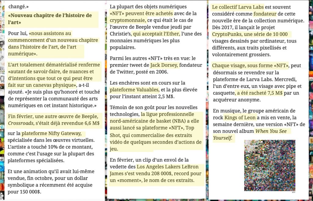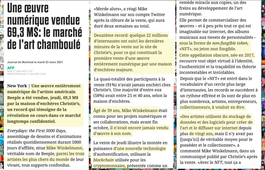L’art totalement dématérialisée renferme autant de savoir-faire, de nuances et d’intentions que tout ce qui peut être fait sur un canevas physique….Mike Winkelmann , artiste numérique.