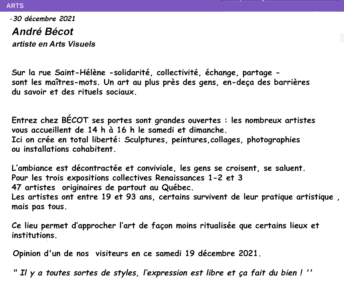 Notre meilleur en 2021. Visite virtuelle des collectifs Renaissance, un, deux et trois , à la Galerie Bécot.