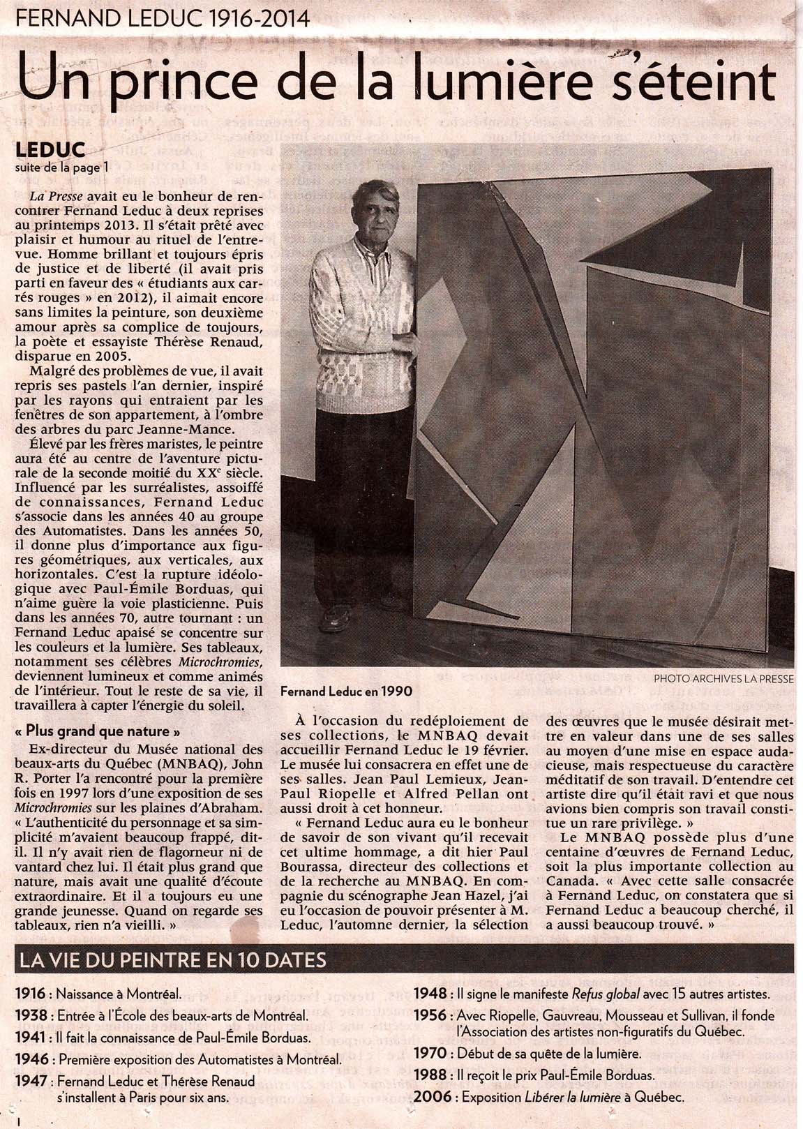 La vie de Fernand Leduc en 10 dates: