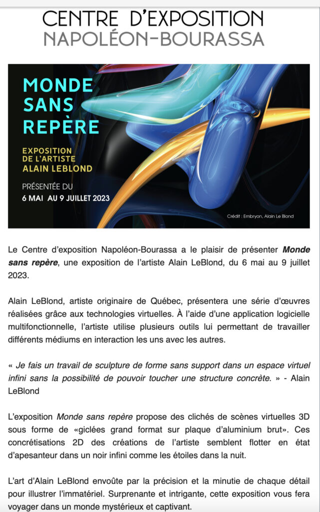Vernissage le samedi 6 mai 2023 à 14 h. Bienvenue à tous !