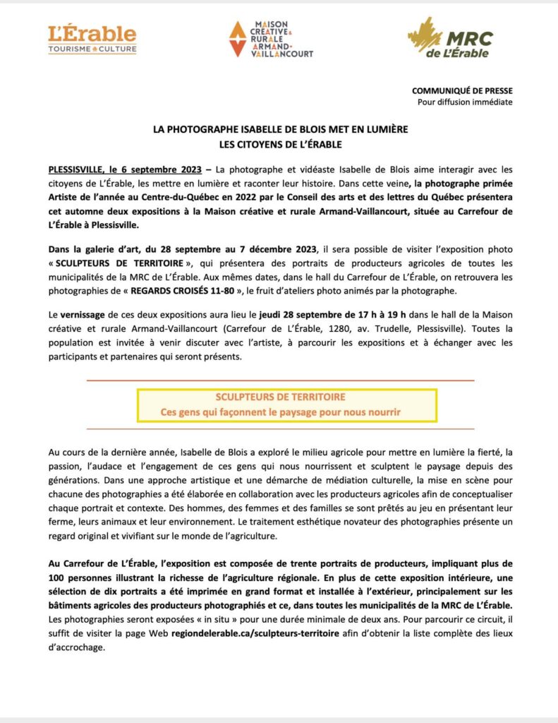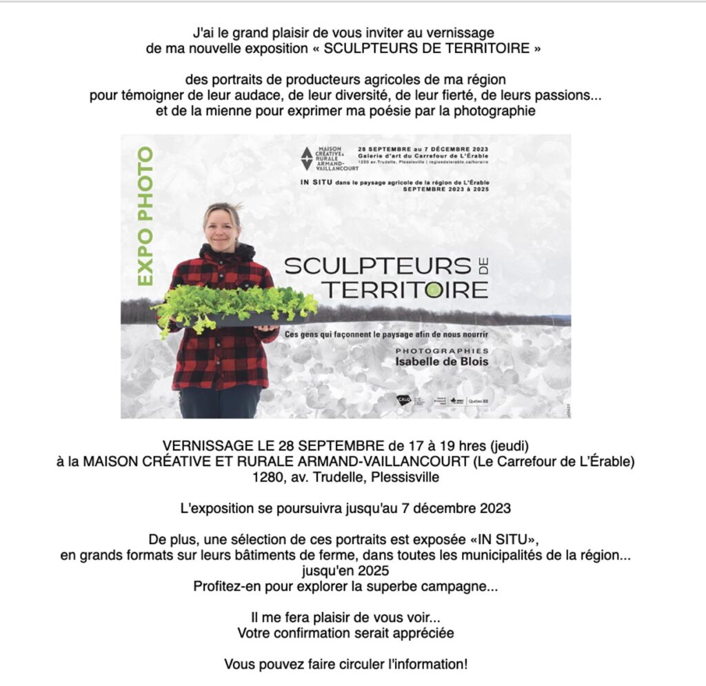 Vernissage le 28 septembre de 17 à 19hrs (jeudi) à la maison créative et rurale Armand-Vaillancourt ( le Carrefour de L’Érable) 1280 , av. Trudelle, Plessisville