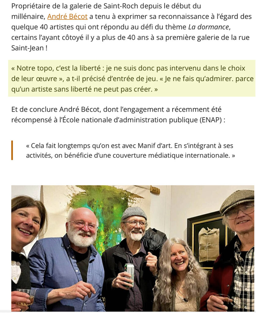 Inauguré le 23 avril 2024 , dans une formule 5@7, c’est sous le thème de la dormance que l’exposition collective se tiendra jusqu’au 31 mars à la Galerie Bécot. Bienvenue à tous !