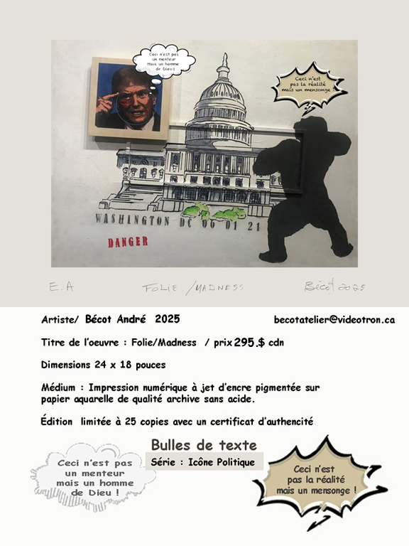 « Exclusive! A new work by the artist André Bécot is now available. This piece, limited to 25 copies, adds to his Political Icon series. »