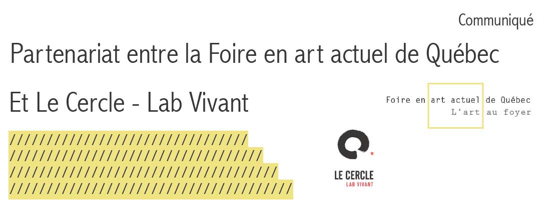 La Foire en art actuel de Québec est fière de s’associer, pour sa deuxième édition, avec Le Cercle – Lab vivant. Nos mandats respectifs de soutien à la relève artistique et de création de contextes d’exposition innovants nous ont réuni cette année afin de présenter une programmation annuelle conjointe dans les locaux du Cercle.
