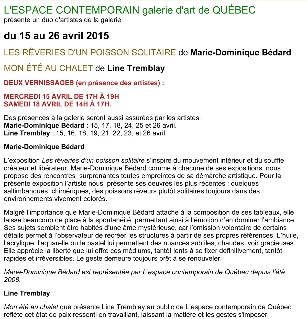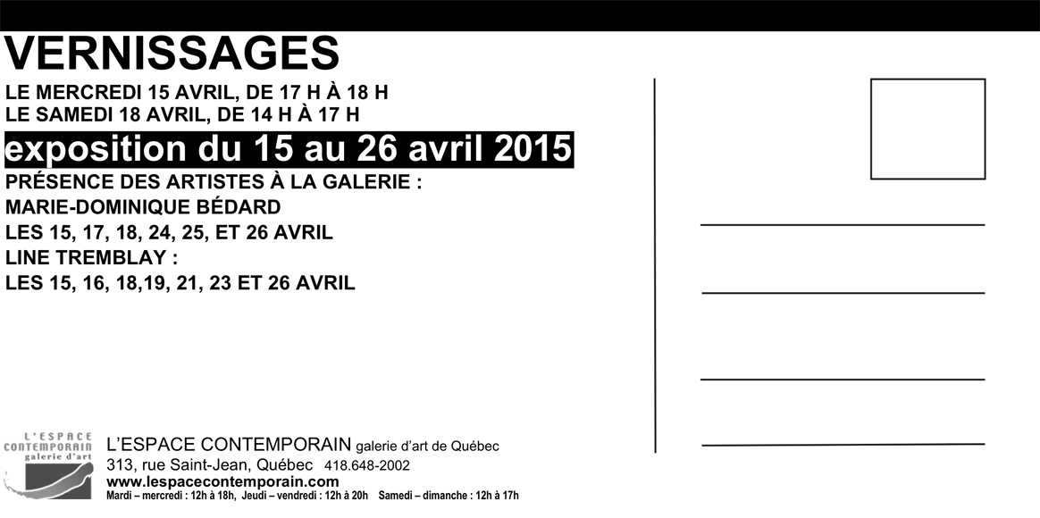 Vernissages le mercredi 15 avril, de 17h à 18h