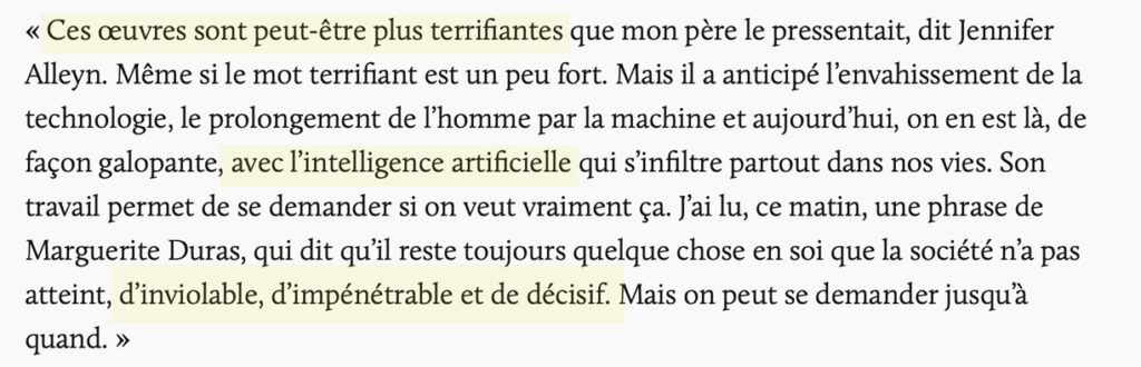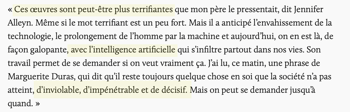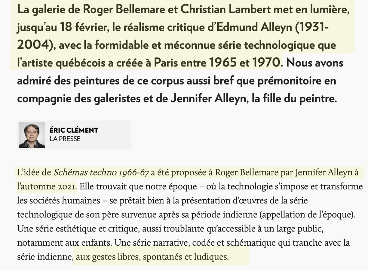 Je me suis souvent surpris à penser que, si je pouvais écrire, je ne peindrais pas. Et si la peinture est un langage, ma peinture compose le seul texte que je puis assumer et signer. » – Edmund Alleyn
