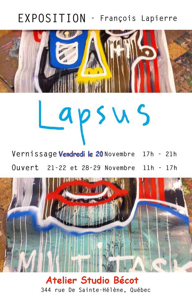 François Lapierre expose en solo du 18 au 29 novembre…..au studio galerie Bécot.