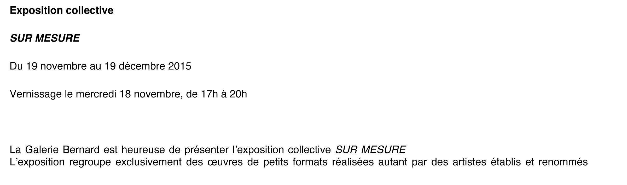 Vernissage le mercredi 18 novembre,de 17h à 20h