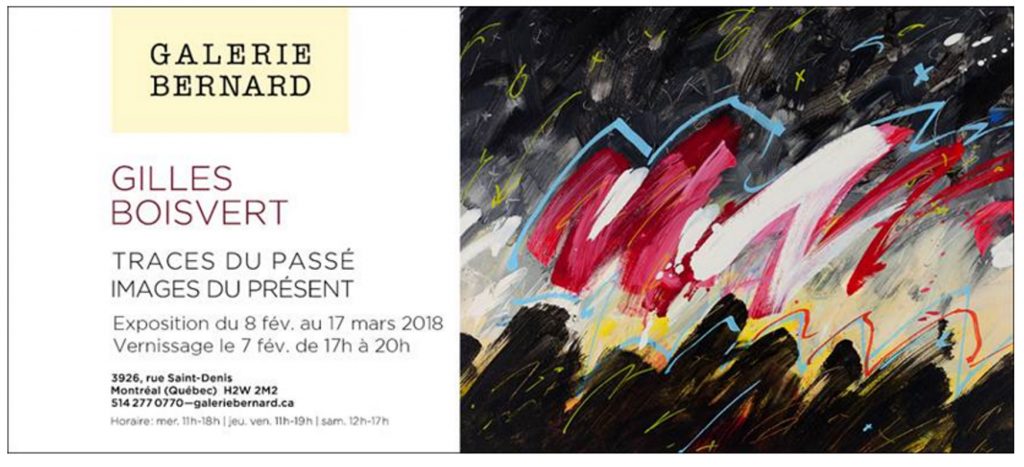 La Galerie Bernard a le plaisir de vous présenter, du 7 février au 17 mars l’exposition TRACES DU PASSÉ,IMAGES DU PRÉSENT de l’artiste Gilles Boisvert.Les oeuvres graphiques et abstraites de 1960 à 2017 présentées dans le cadre de cette exposition,témoignent de la fructueuse carrière de l’artiste peintre .Boisvert nous trace ainsi l’évolution de son incomparable et unique style qu’il n’a cessé de parfaire depuis plus de 50 ans.