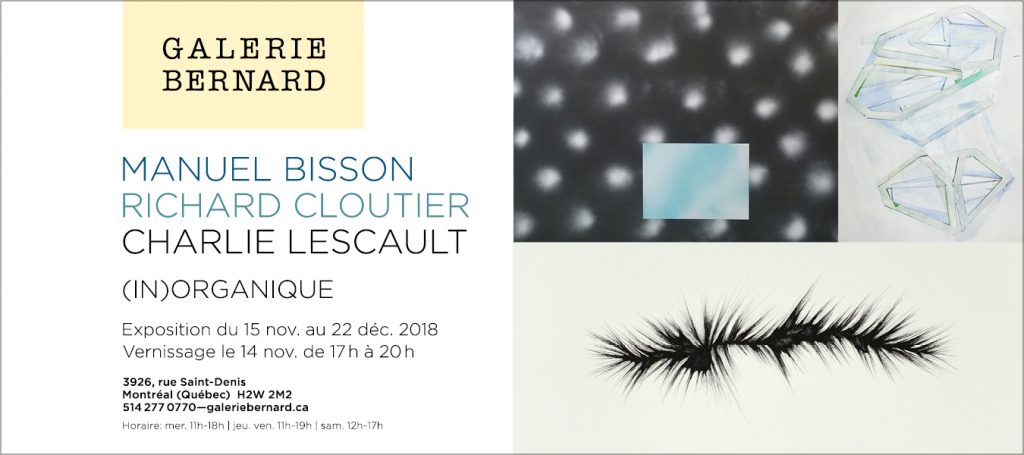 C’est par une fascinante évocation du naturel, l’imitation de la nature versus l’artificiel, la (dé)construction de formes architecturales et par le surgissement de singulières textures que l’ensemble de ce corpus nous propose de nouvelles interprétations de l’espace pictural et de la forme. Les œuvres de l’exposition (IN)ORGANIQUE portent dans leurs oscillations l’éloquente charge esthétique d’un formalisme rafraîchi et l’affectivité prenante de sujets qui nous semblent vivants.