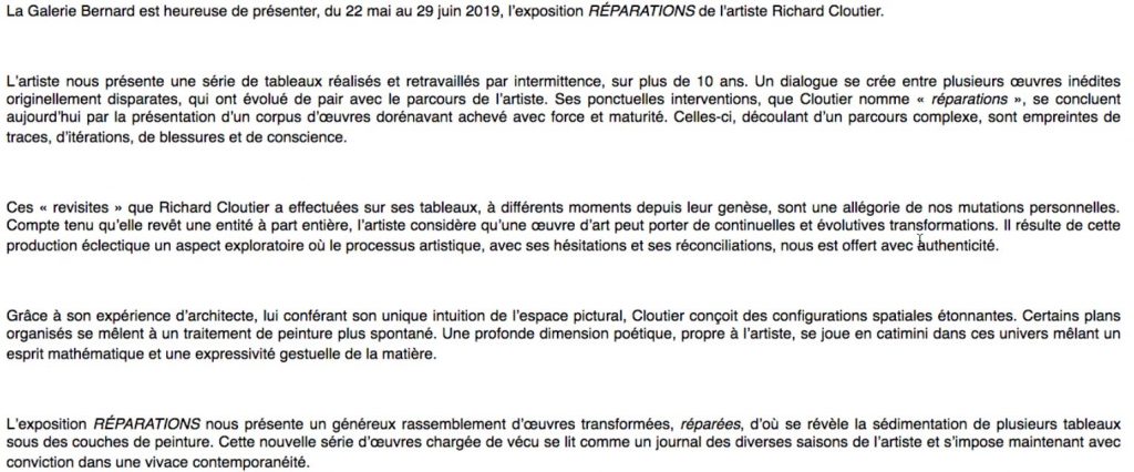 Richard Cloutier du 23 mai au 29 juin 2019.
