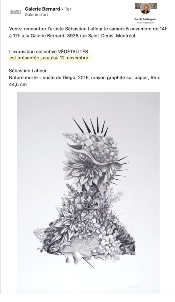 Venez rencontrer l’artiste Sébastien Lafleur, Carole Baillargeon…