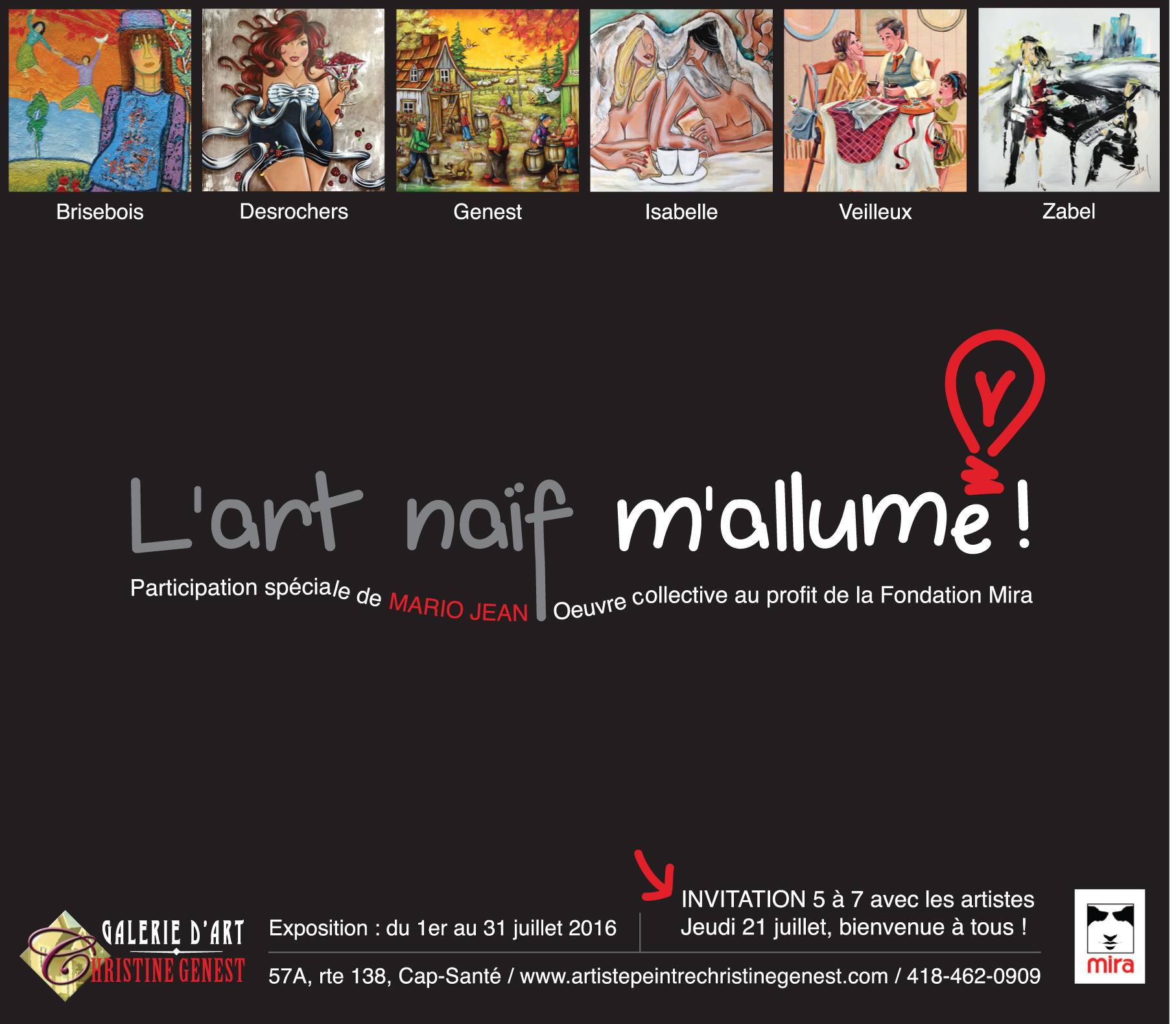L’humoriste Mario Jean a participé à la création de la lampe collective et ce, au profit de la Fondation Mira. Cette œuvre collective est réalisée en collaboration avec les 6 artistes peintres de l’exposition.
