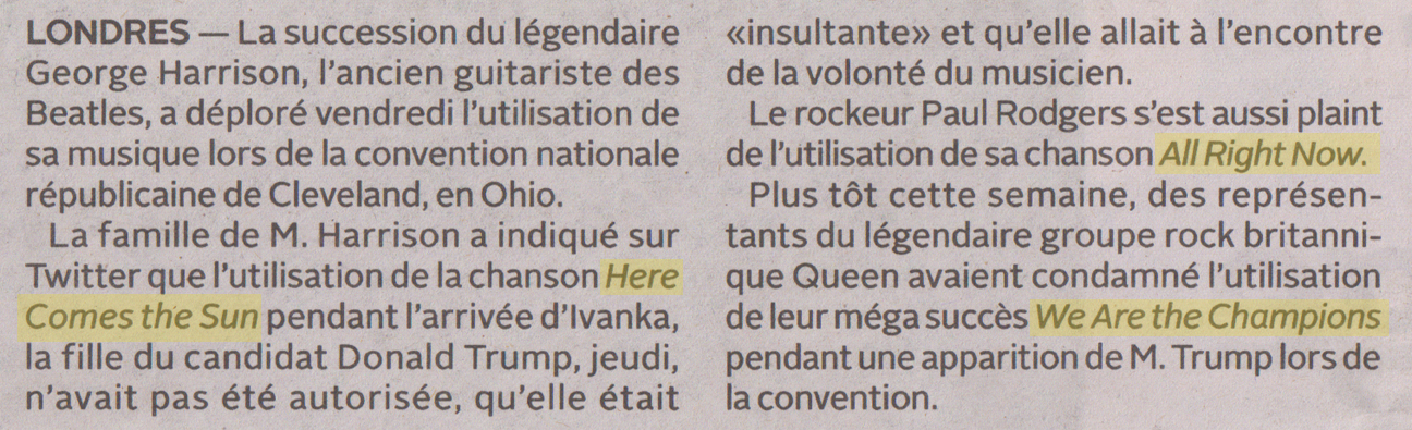 Here Comes the Sun,All Right Now,We Are the Champions.