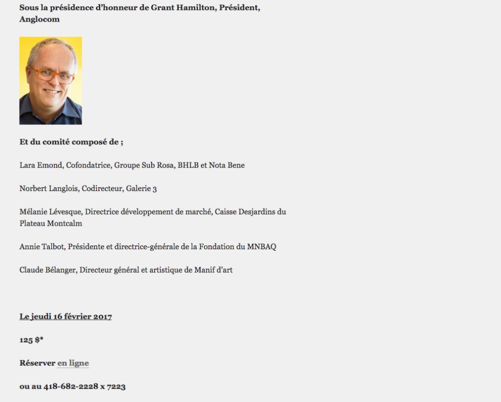 Sous la présidence d’honneur de Grant Hamilton, Président, Anglocom et du comité composé de ;