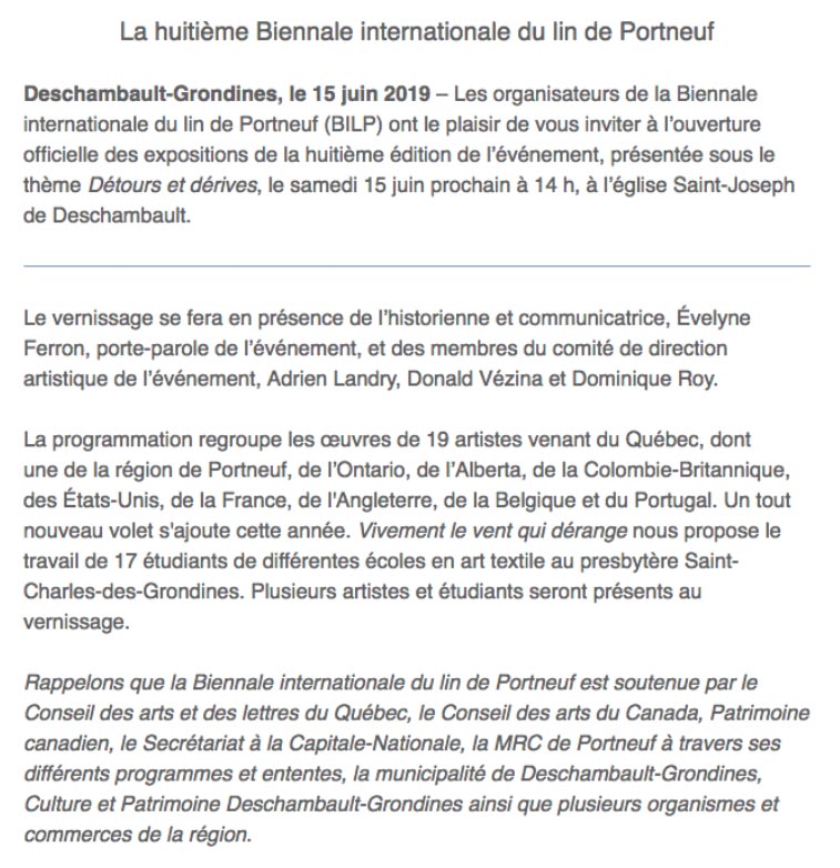 Neuvième Biennale internationale du lin ( BILP) du 19 juin au 3 octobre 2021