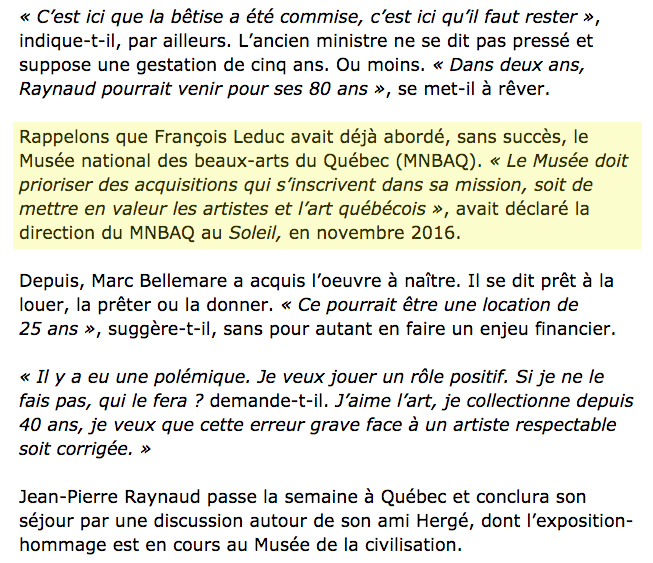 Jean Pierre Raynaud, le Devoir et le journal de Québec Par André Bécot © 24 septembre 2017 Artistes, Conférences, Événements/ Foire d'art, Le Devoir Aucun commentaire Le << cube blanc >> renaîtra de ses cendres. Le journal de Québec par Dominique Lelièvre Etiqueté le:André Bécot,club des collectionneurs en arts visuels de quebec,Dominique Lelièvre,François Leduc,Jean-Pierre Raynaud,Jérôme Deldado,Le Devoir,Marc Bellemare collectionneur,Regis Labaume,Studio Bécot,visuals Arts ← André Bécot, Ab Origine. Francine Vernac & Gabriel Lalonde exposent au Musée Marius Barbeau → Laisser un commentaire Annuler la réponseVotre adresse e-mail ne sera pas publiée. Les champs obligatoires sont indiqués avec *Commentaire * Nom * E-mail * Site web Enregistrer mon nom, mon e-mail et mon site dans le navigateur pour mon prochain commentaire. Δ