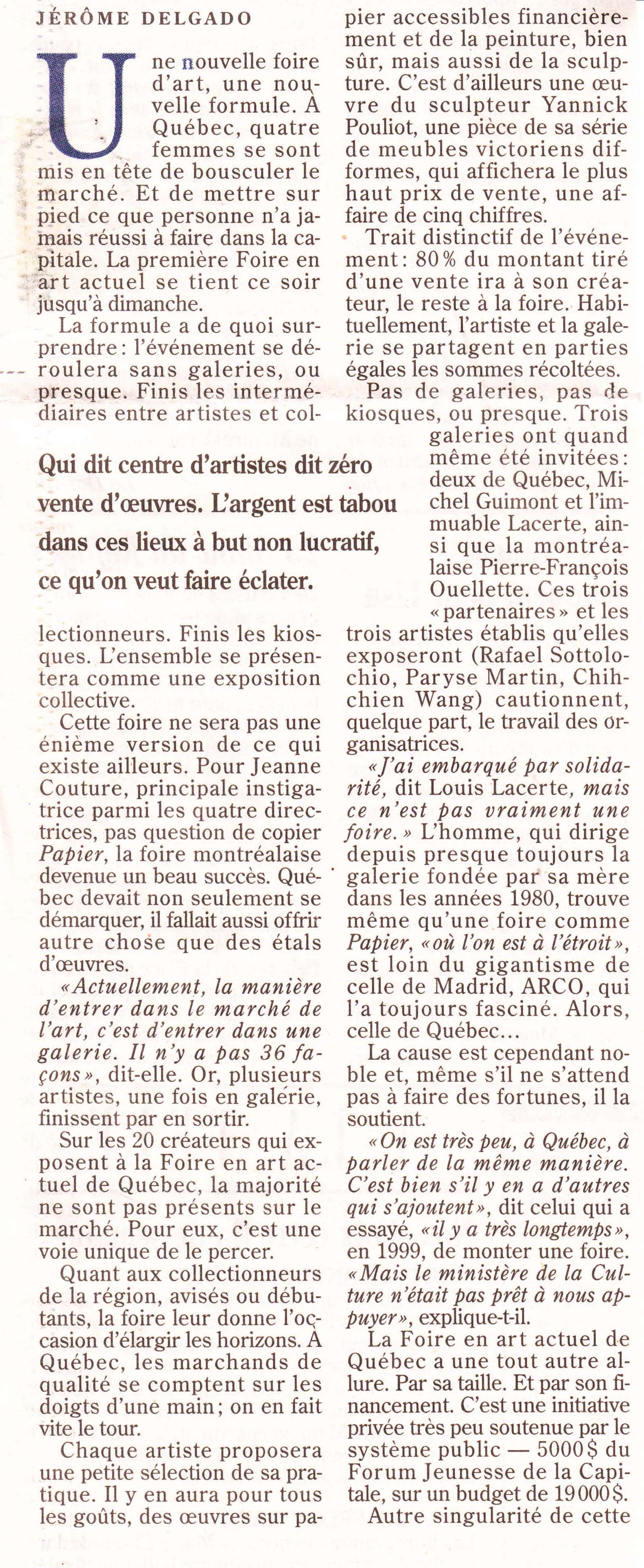 Article du journal, Le Devoir(18 octobre 2013) en bas de page.