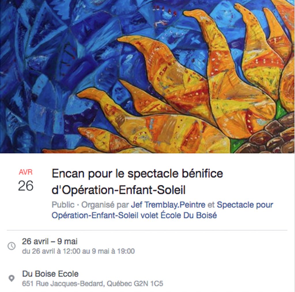 Encan pour le spectacle bénifice d’Opération -Enfant-Soleil