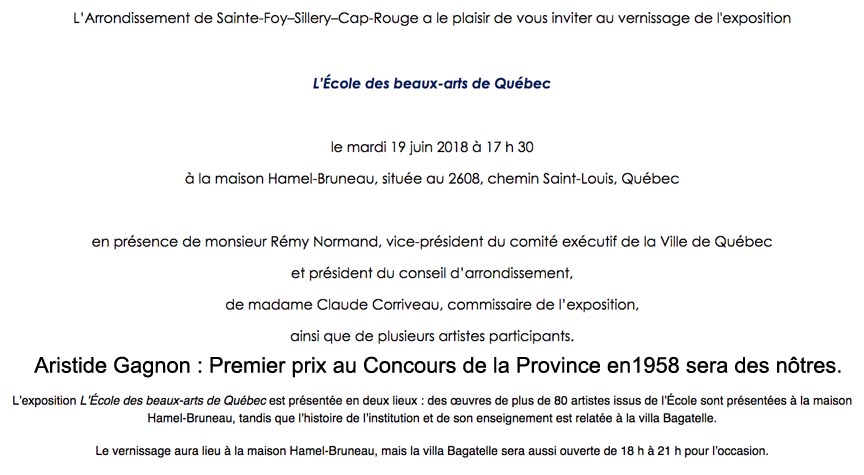Aristide Gagnon : Premier prix au Concours de la Province en 1958 ( aujourd’hui prix Borduas), le peintre Carol Poulin et Jean-Yves Richard, seront aussi de cette exposition.