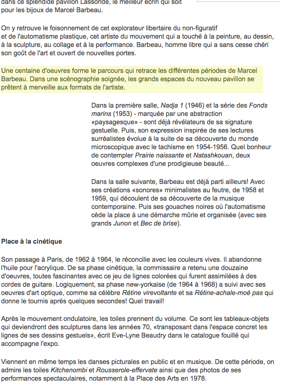 Barbeau fut à l’amorce de nombreux courants d’avant-garde et de tendances artistiques au pays : il s’avère un contributeur essentiel aux premiers développements de l’abstraction picturale (années 1940 et 1950), il est internationalement reconnu pour sa contribution à l’art optique (années 1960) et il prend part aux premières manifestations transdisciplinaires au Québec (années 1970).
