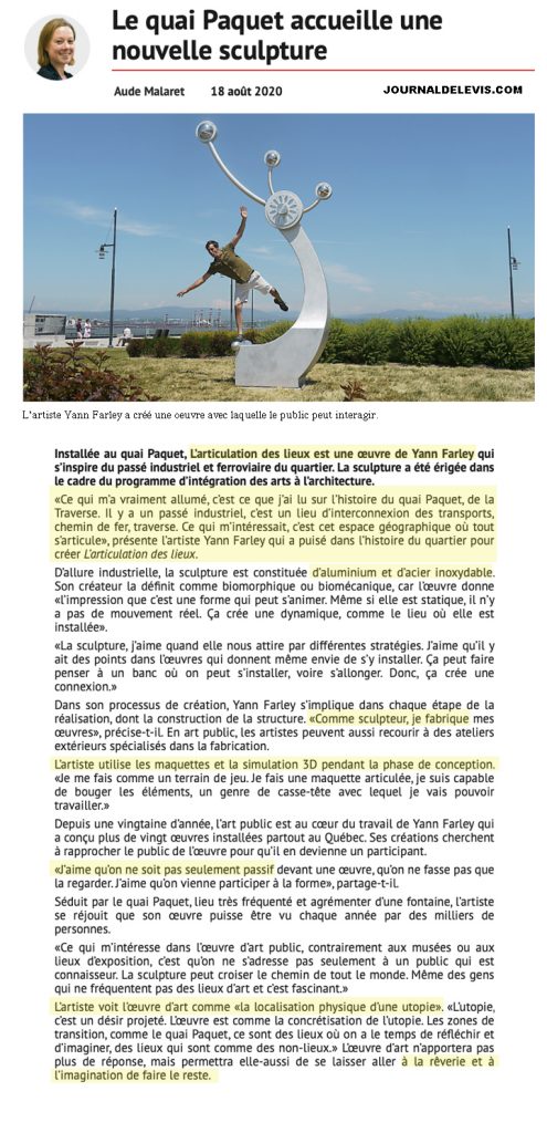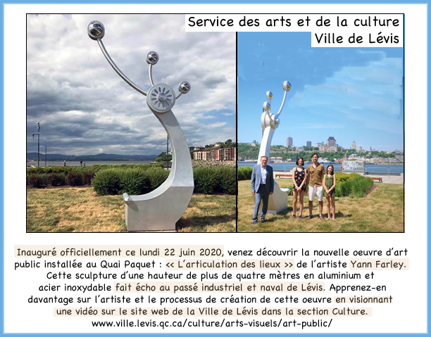 Inauguration de la Sculpture de Yann Farley au Quai Paquet de Lévis le 22 juin 2020…